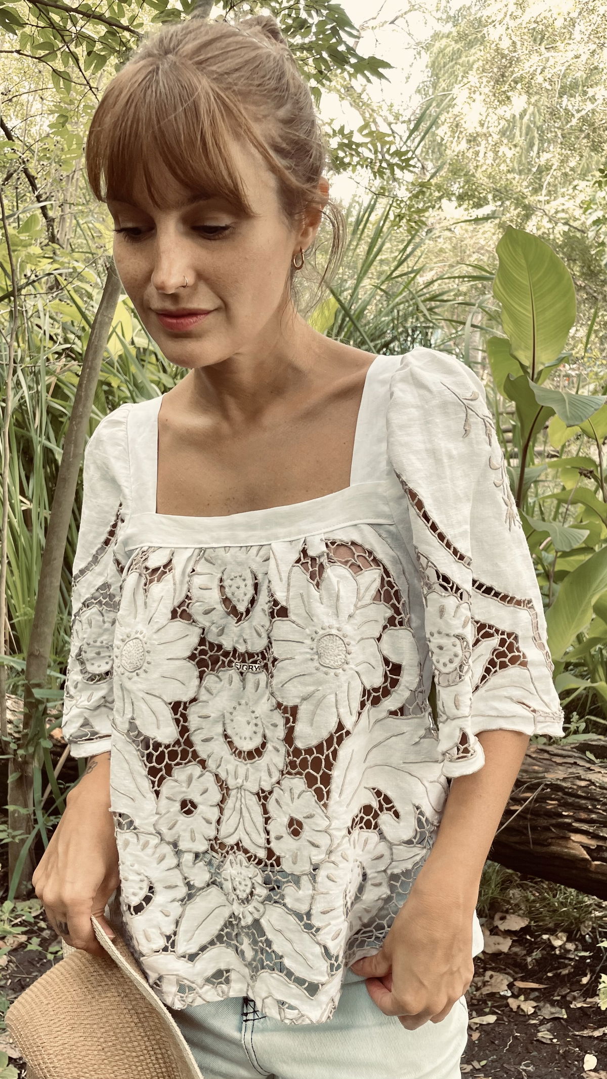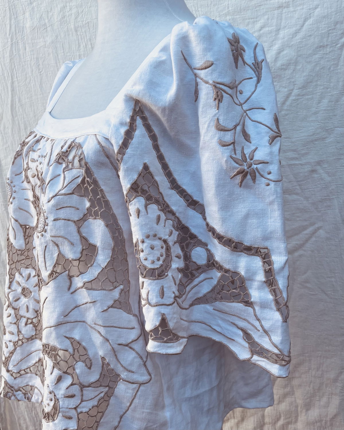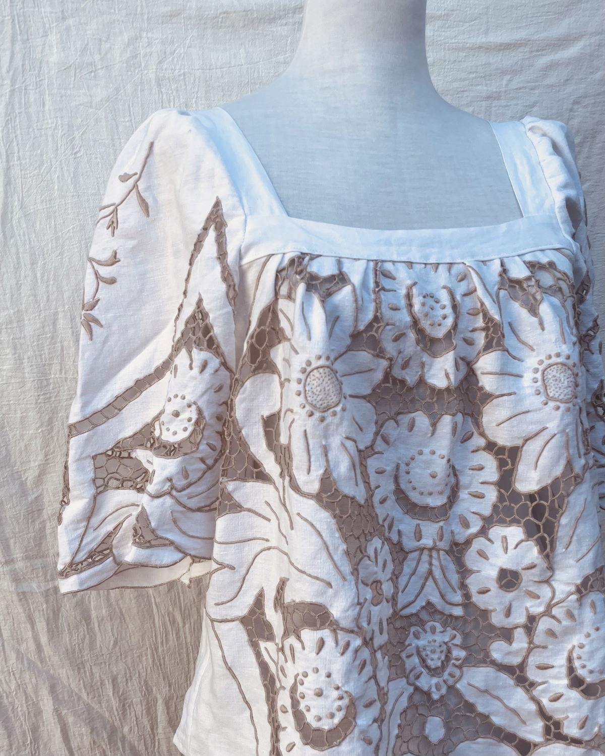 Blusa amplia de algodón con bordado Richelieu y calados. Mangas amplias
