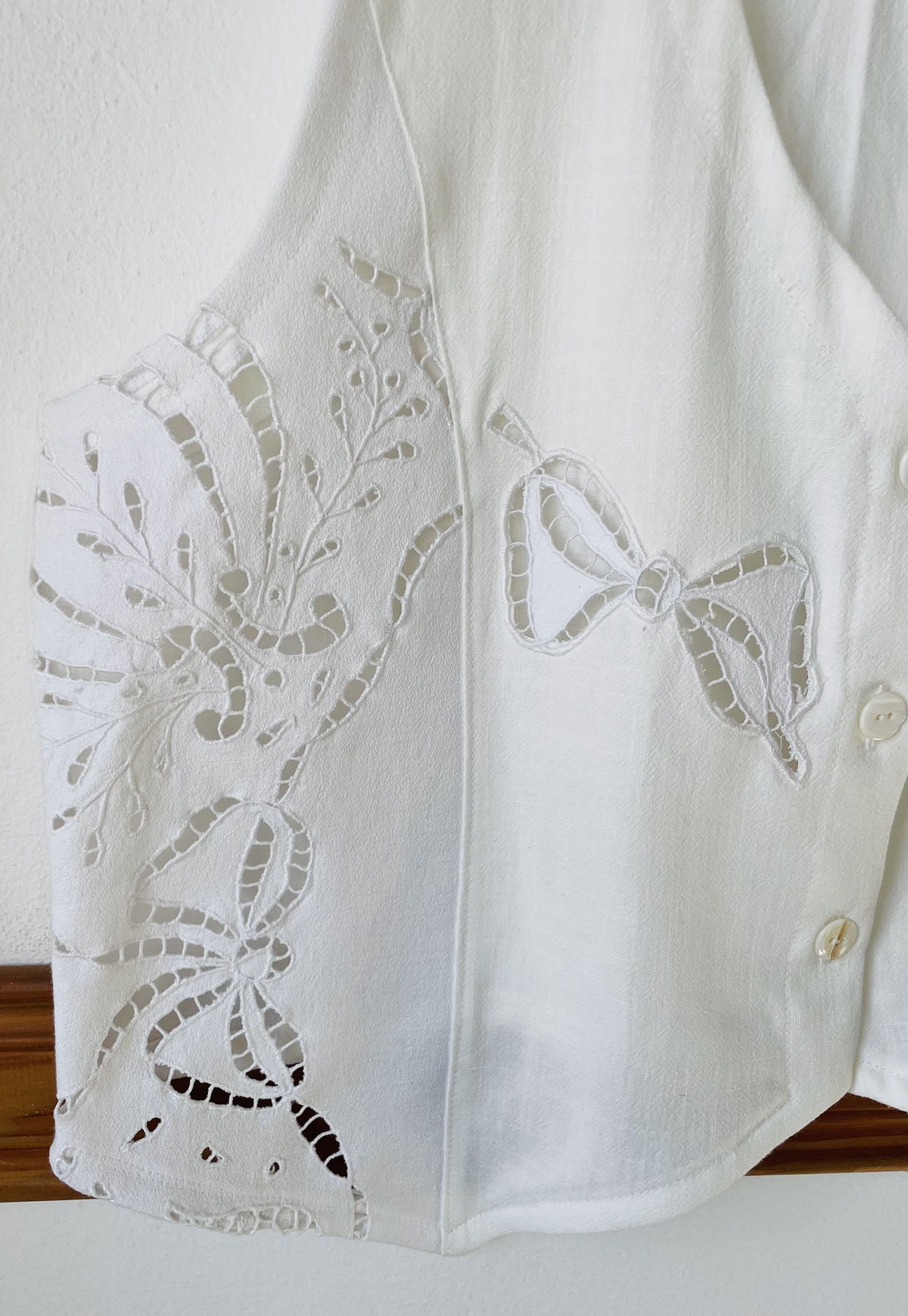 Chaleco sastrero confeccionado con lino y granité (tela de algodón con cuerpo estilo gabardina o Jean)