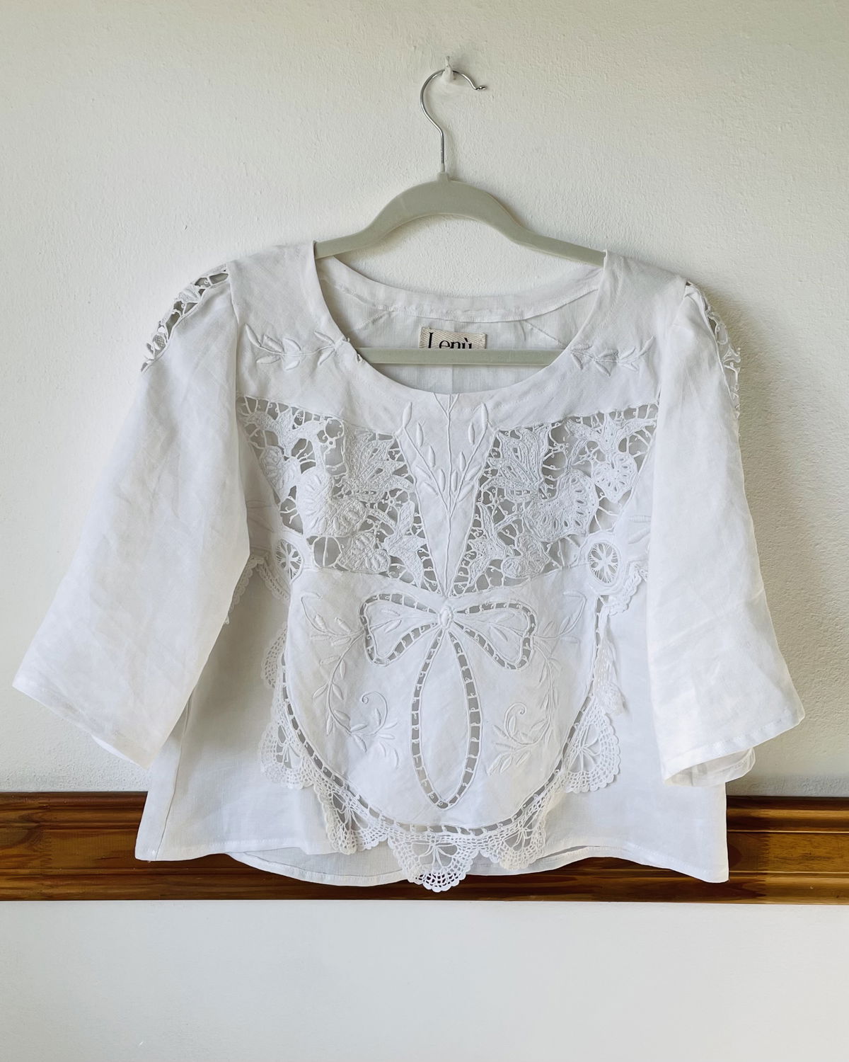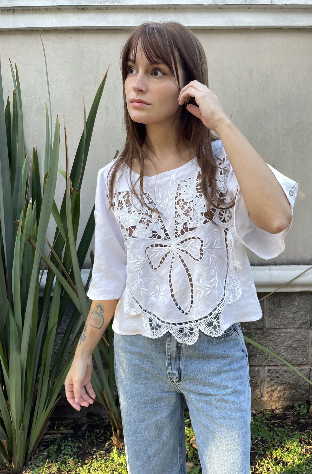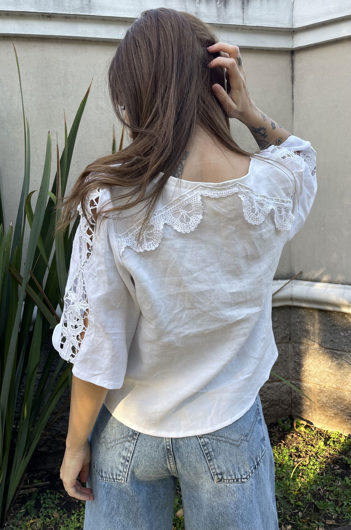 Blusa de algodón bordado y calado con detalles de puntillas de crochet