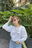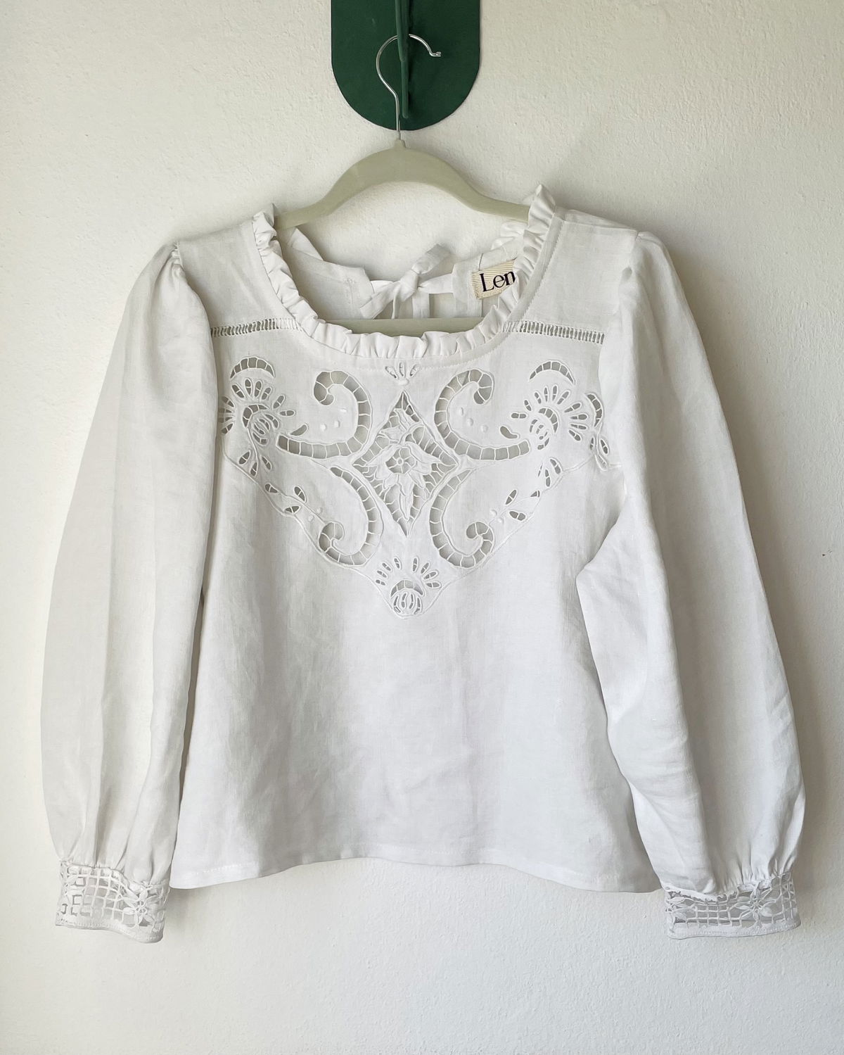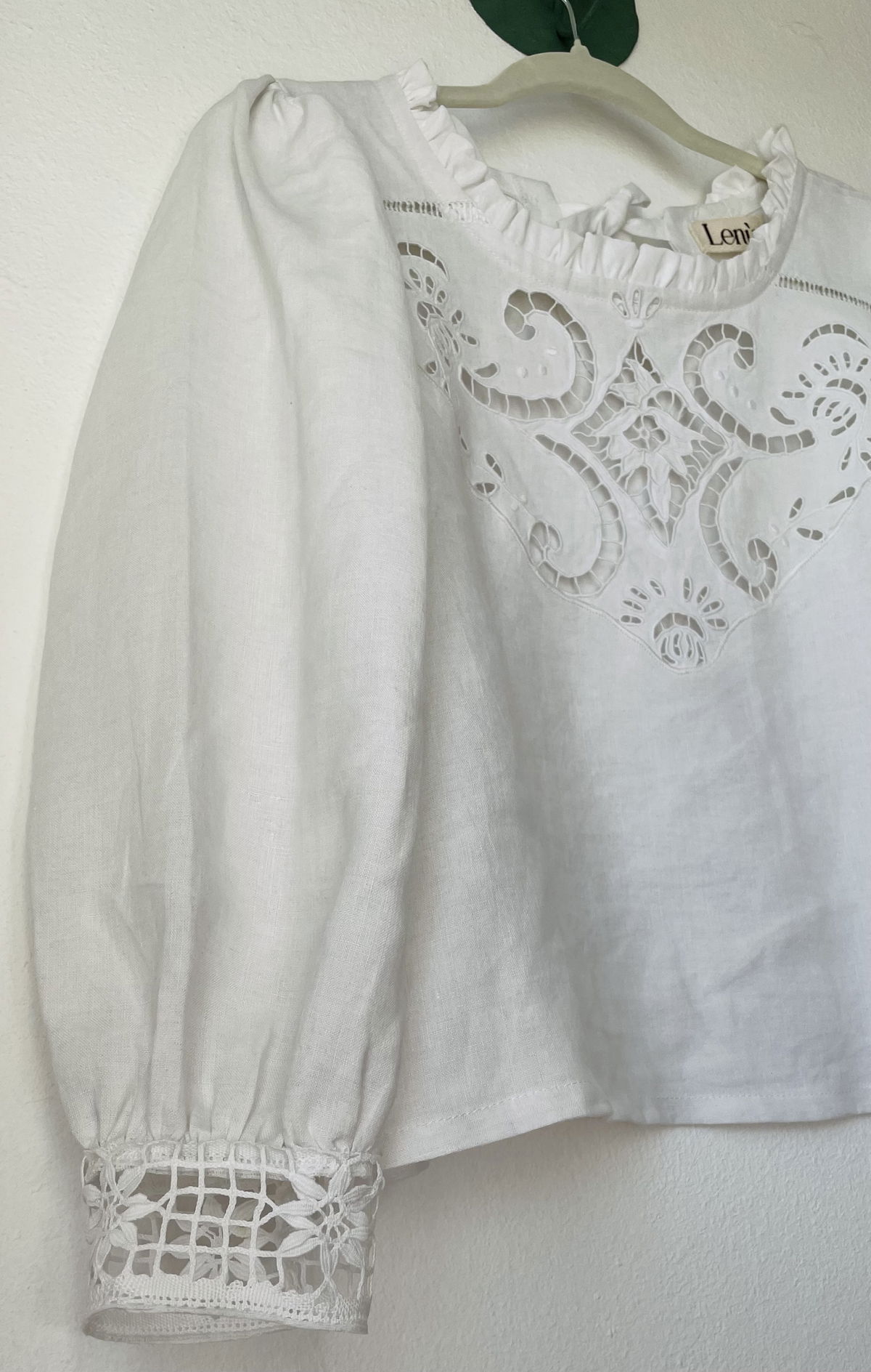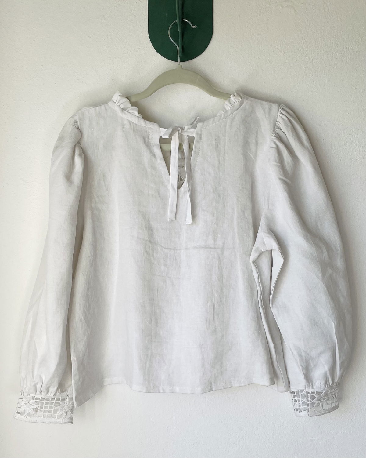 Blusa de algodón bordado y calado, con vainillas y detalle en puños