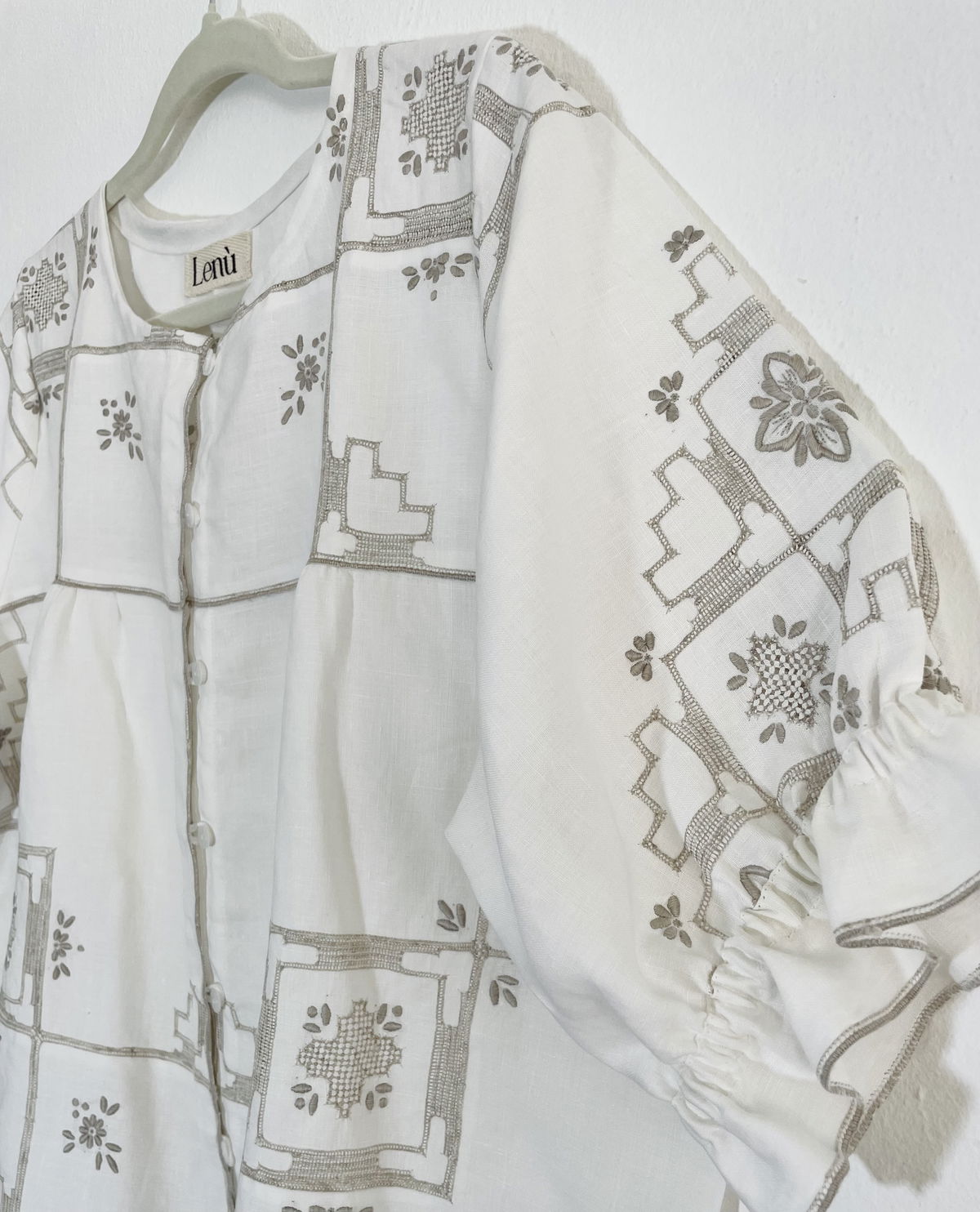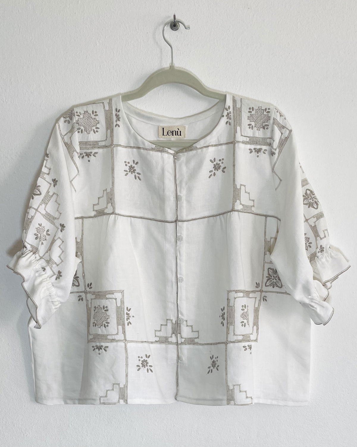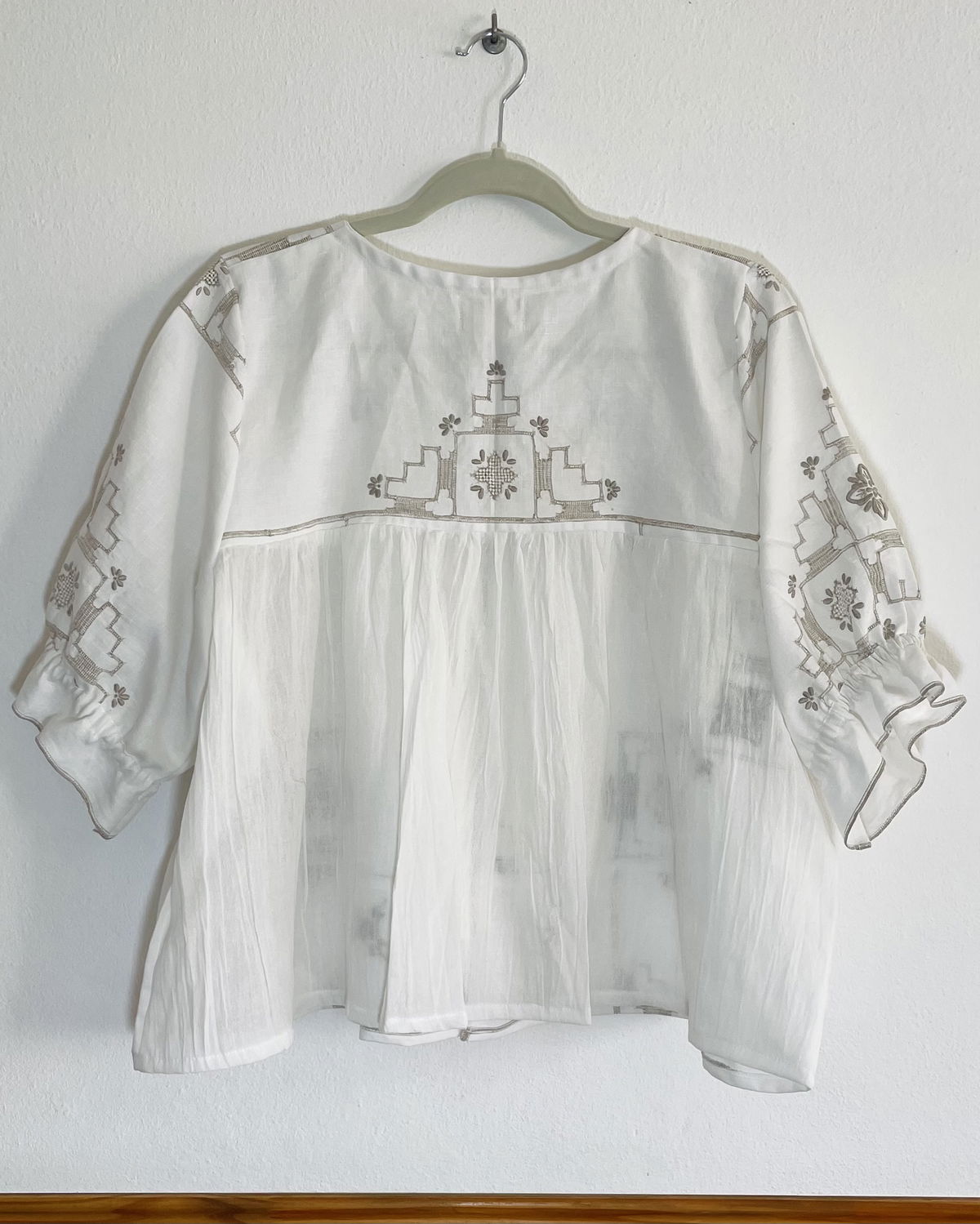 Camisa de algodón bordado y calado con elastico en ruedo de mangas