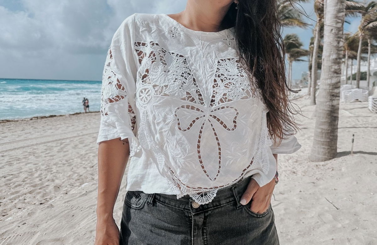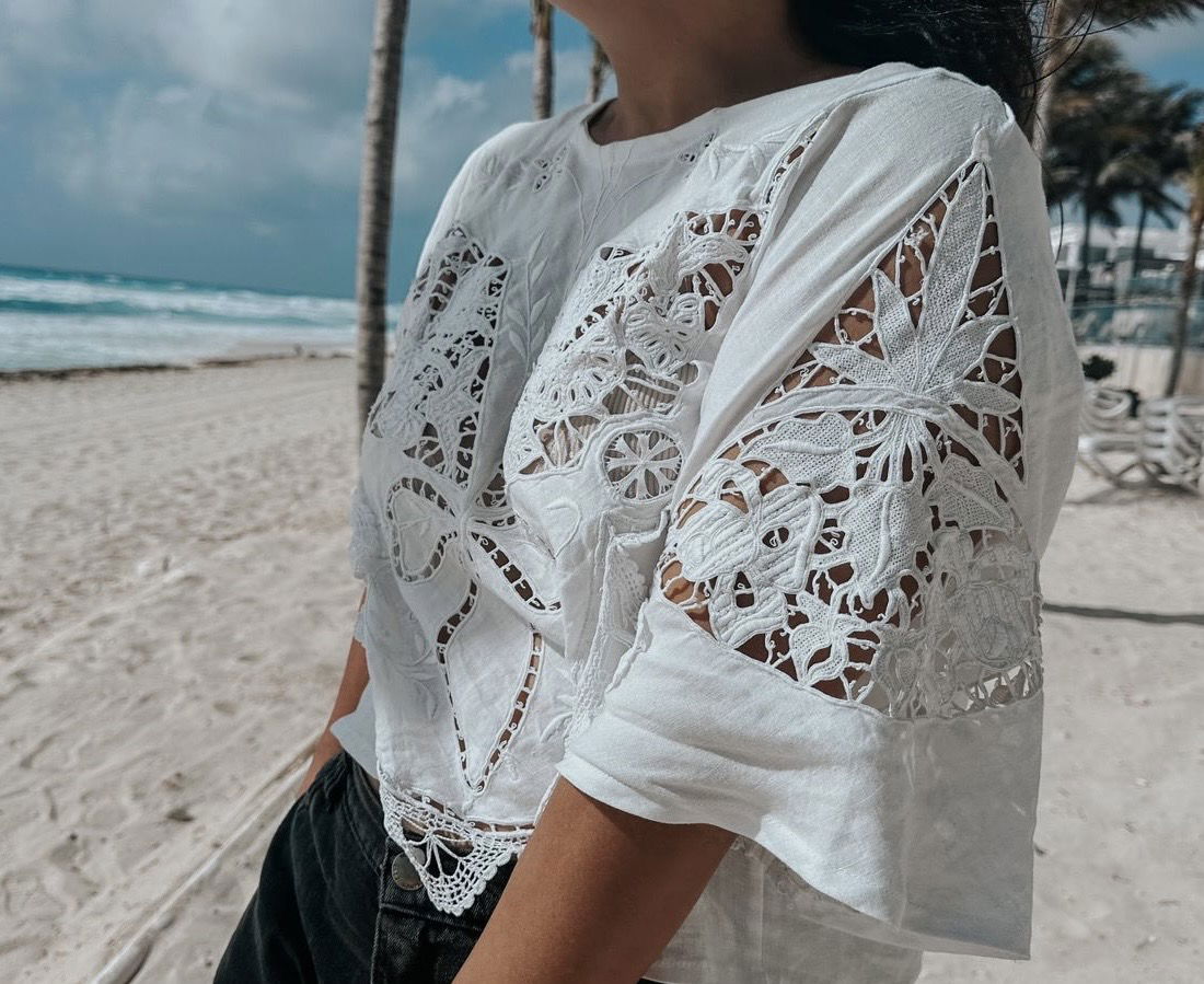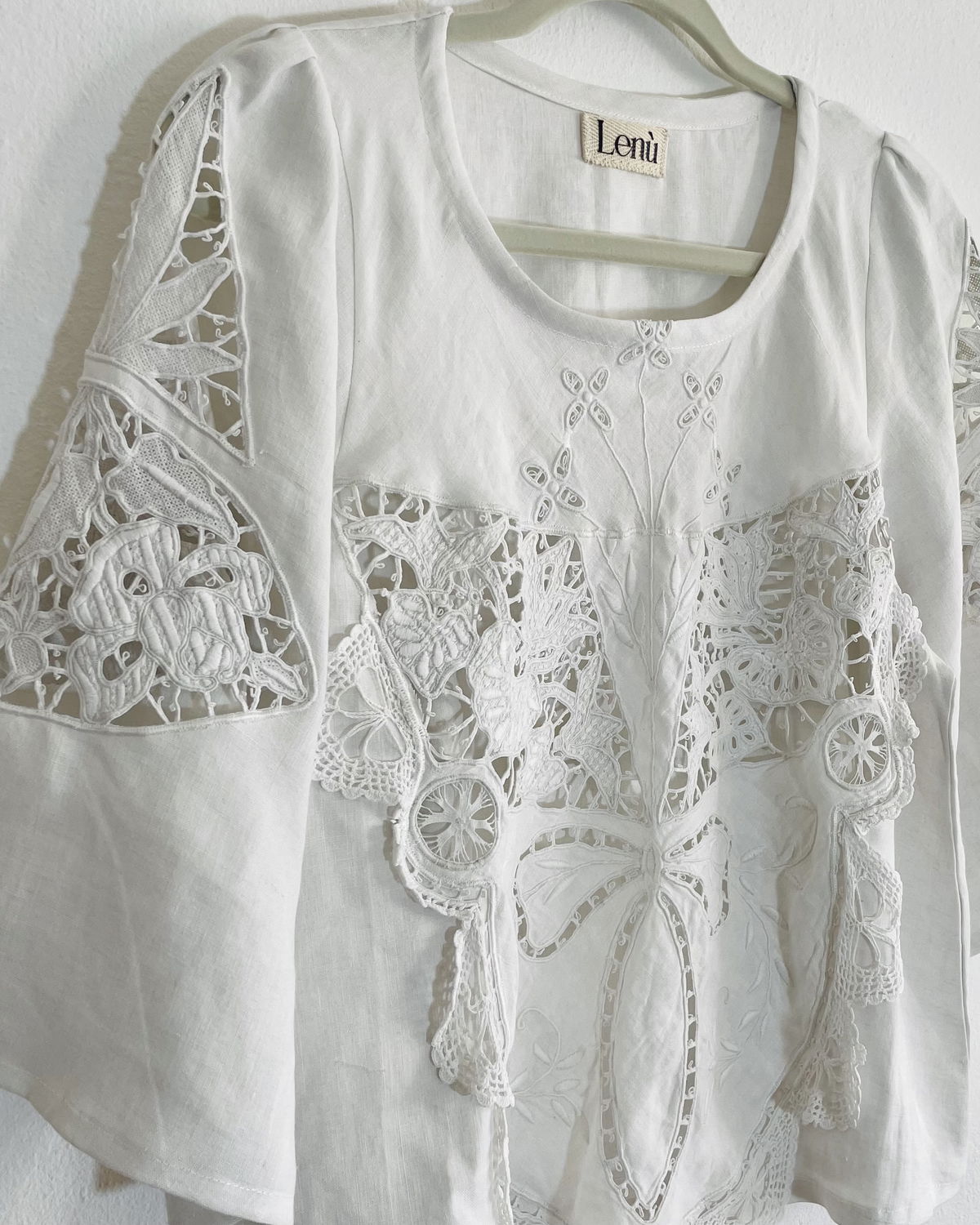 Blusa de algodón bordado y calado, con detalle de puntillas tejidas en crochet