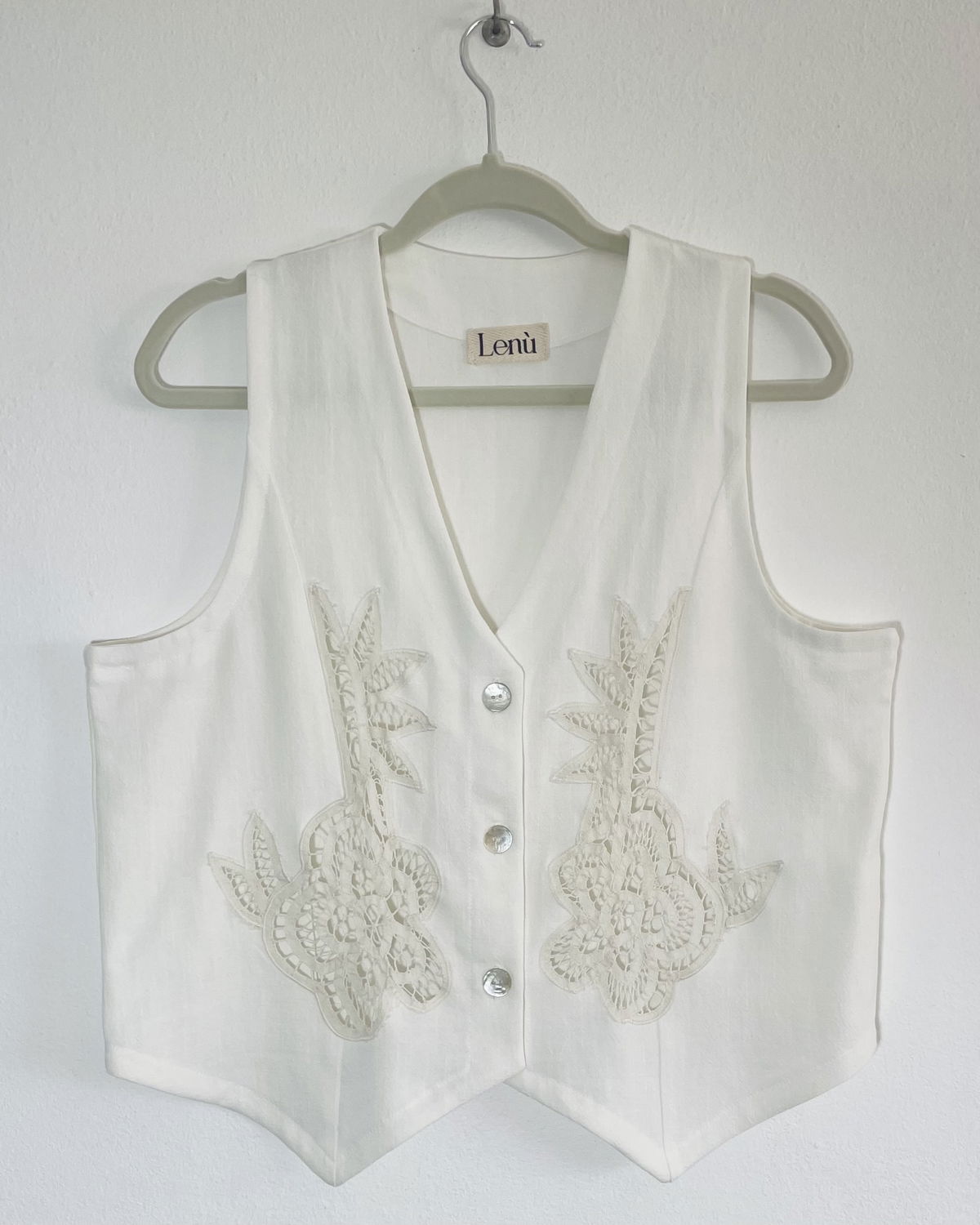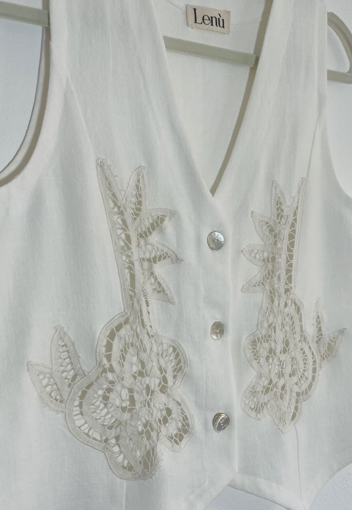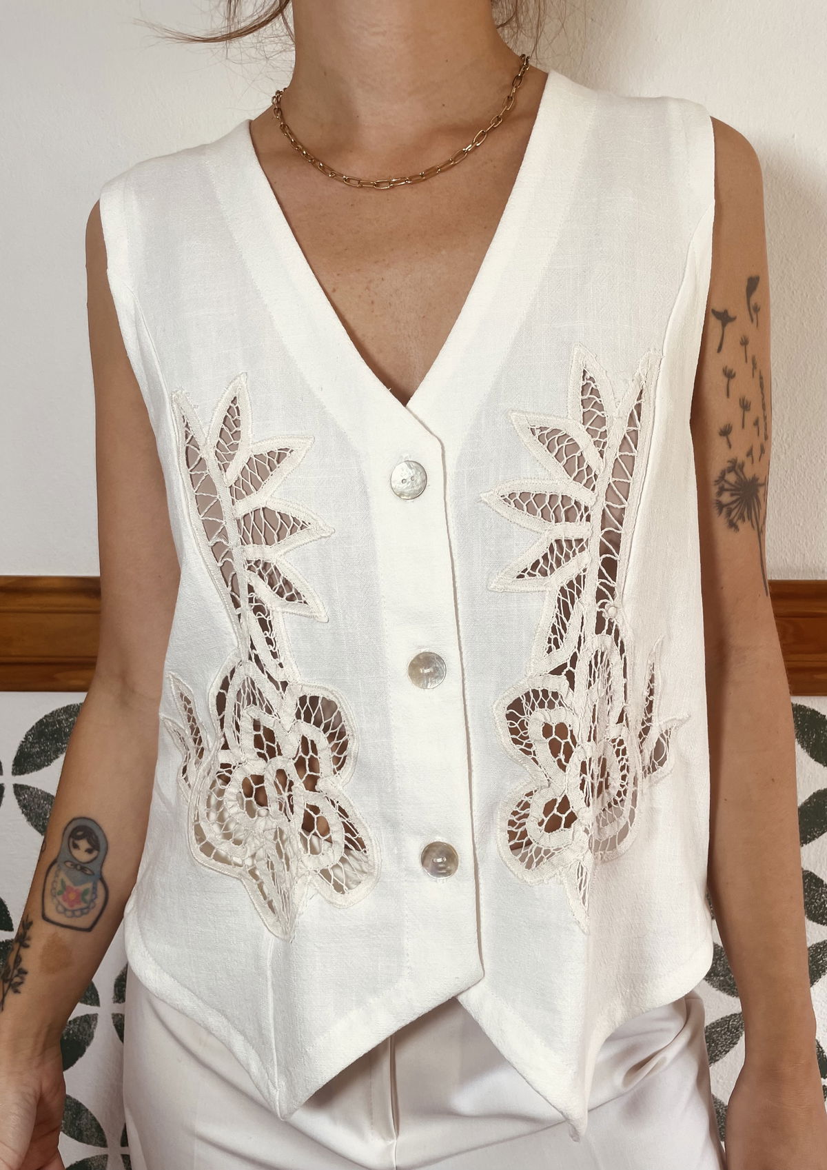 Chaleco de lino con apliques bordados y calados