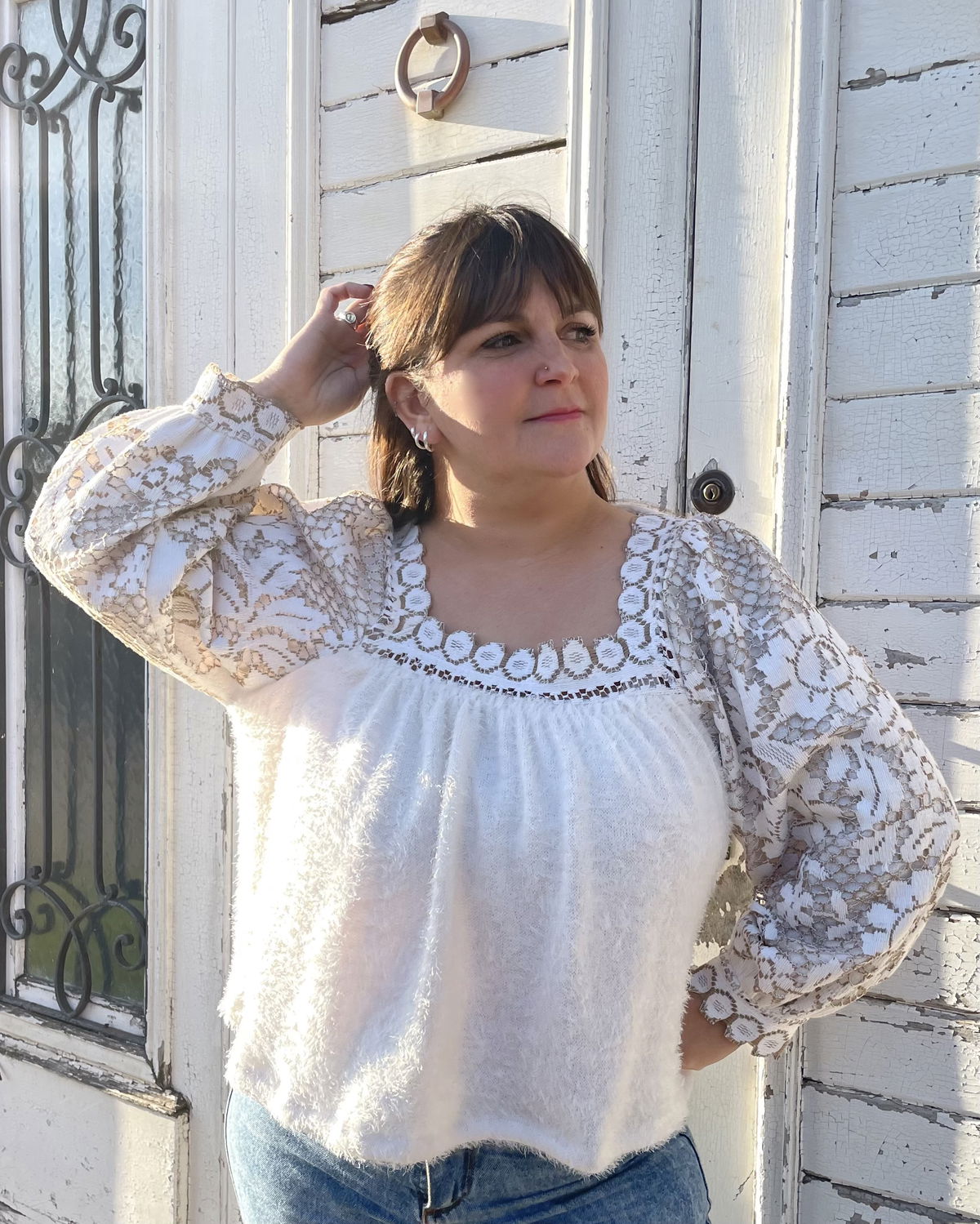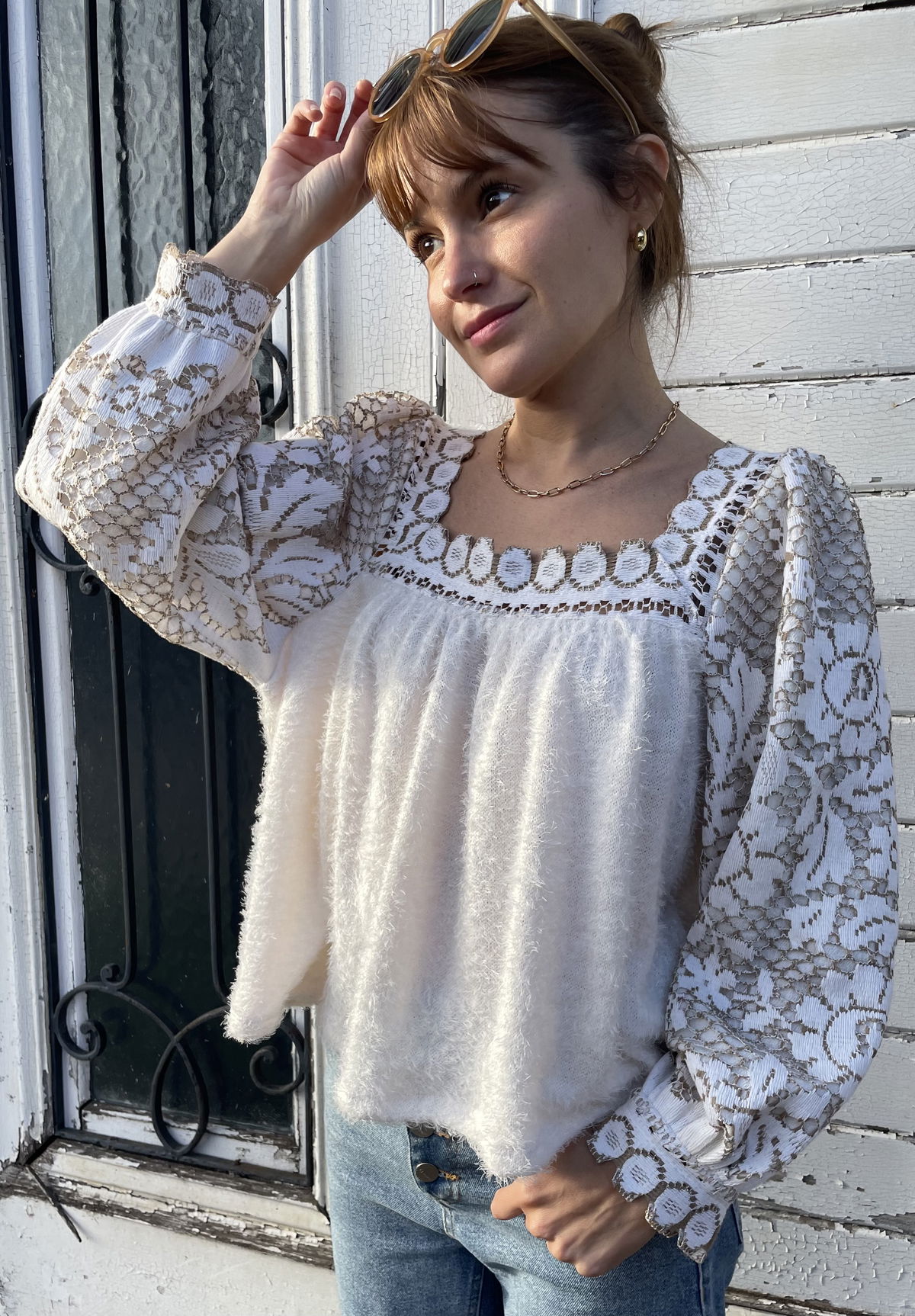 Blusa de lanita pelo de mono (abrigada y elastizada) con mangas de fibra de coco forradas en algodón