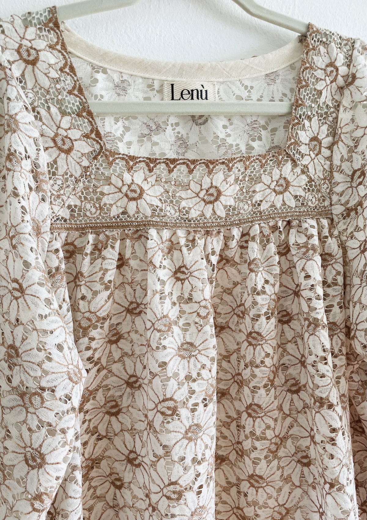 Blusa de fibra de coco con cuello cuadrado y mangas abullonadas
