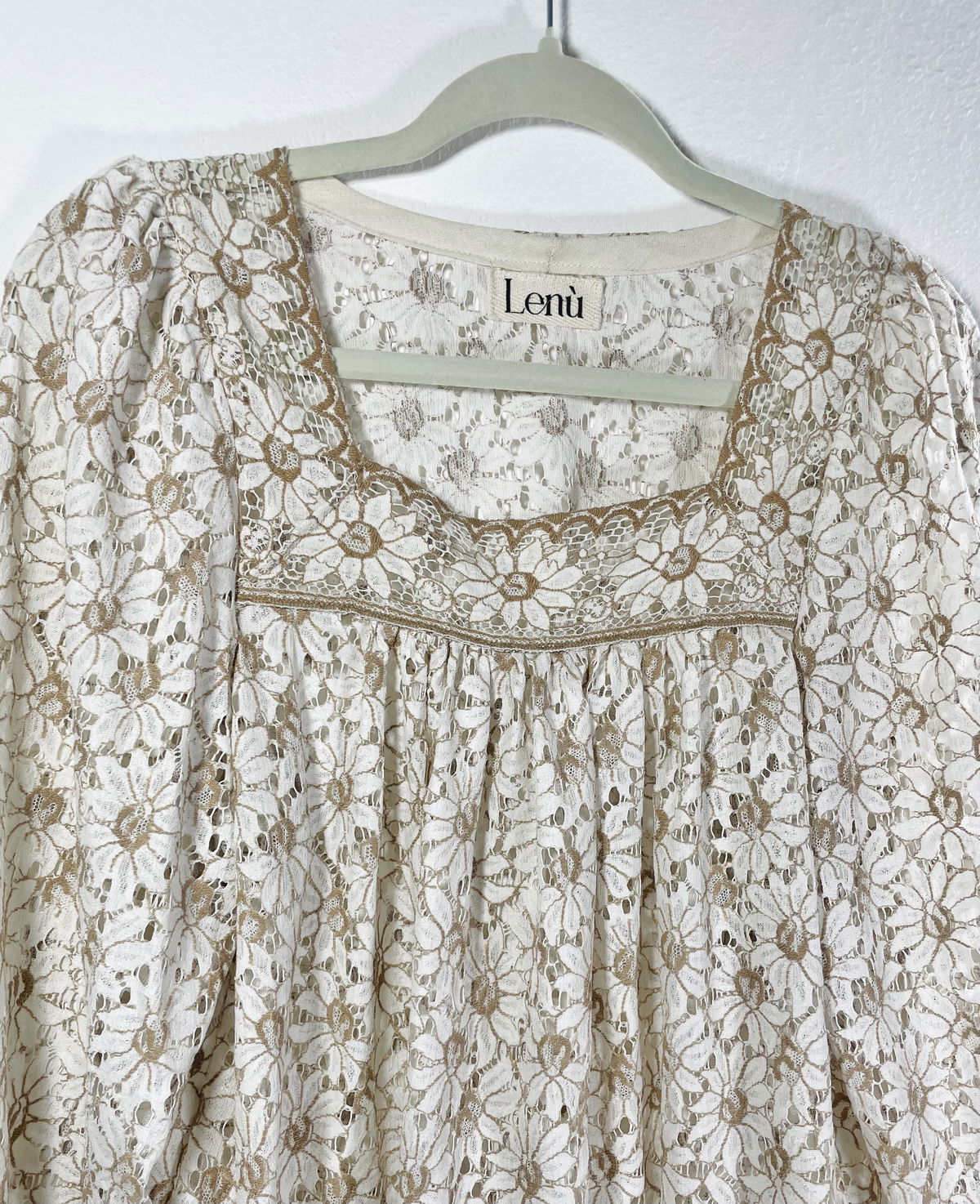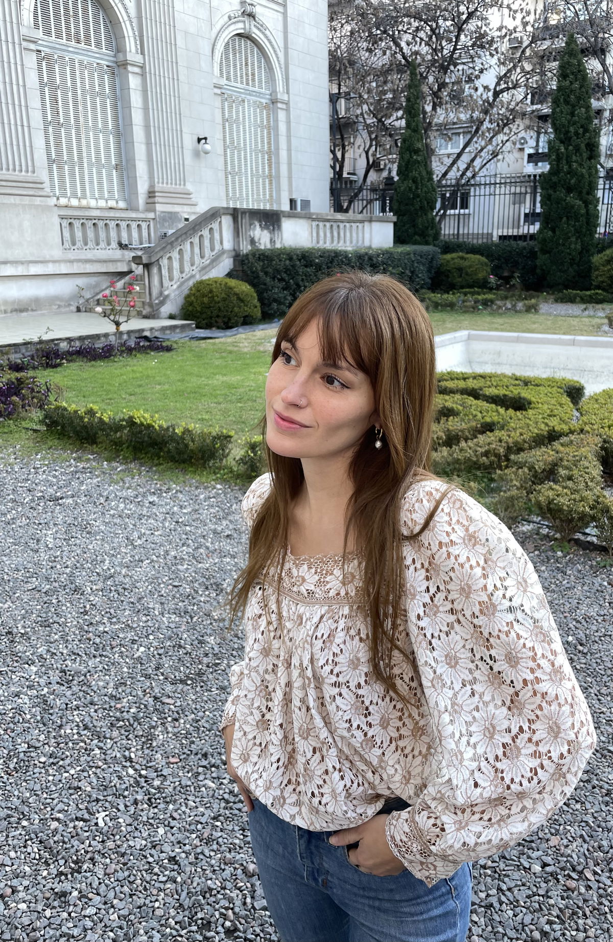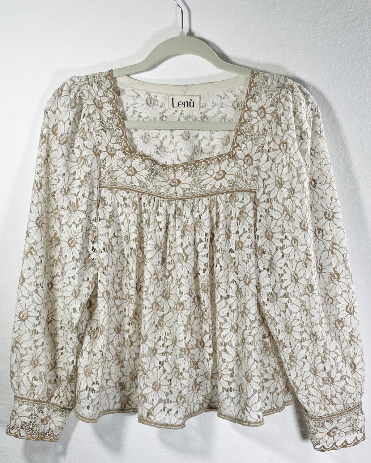 Blusa de fibra de coco con cuello cuadrado y mangas abullonadas