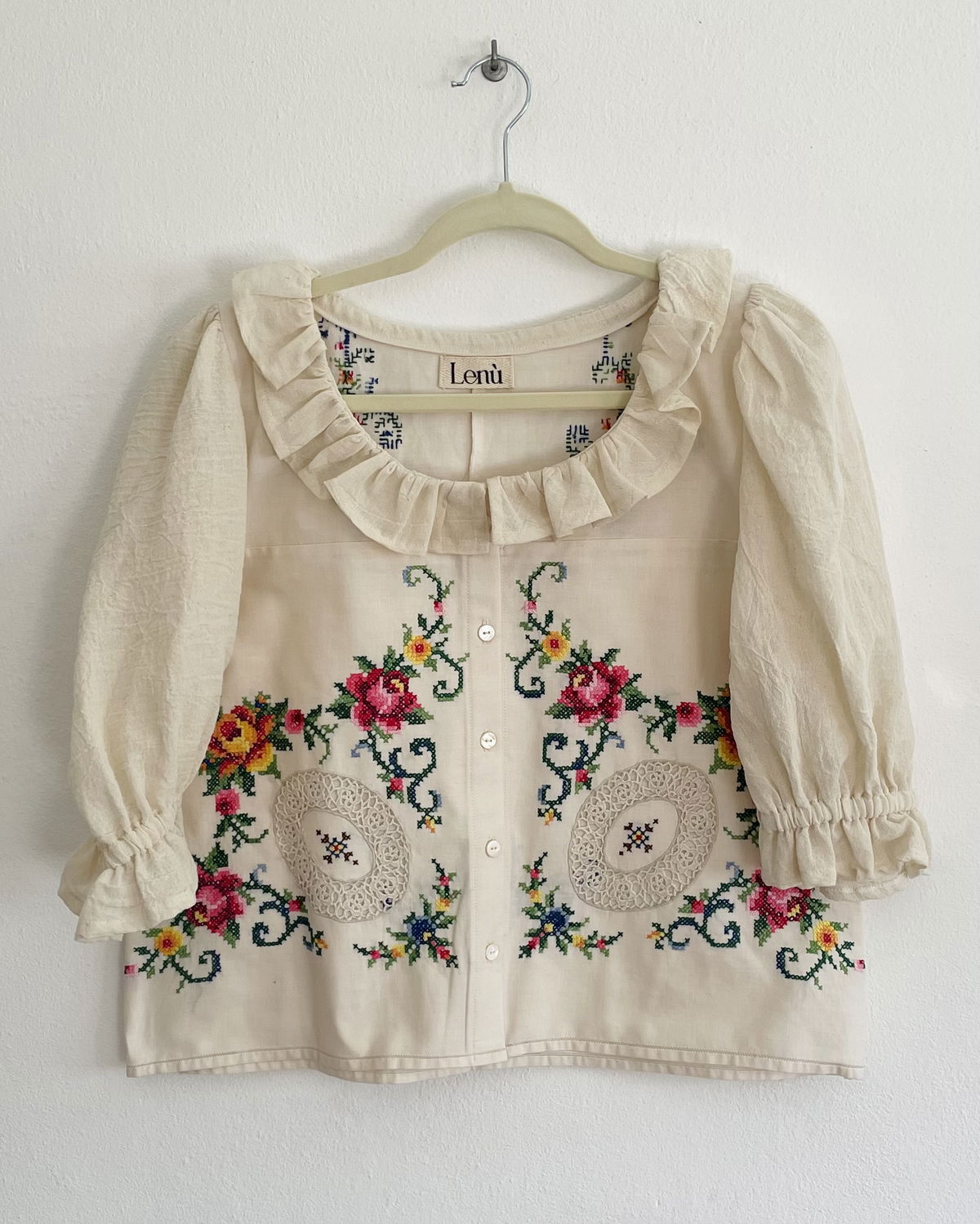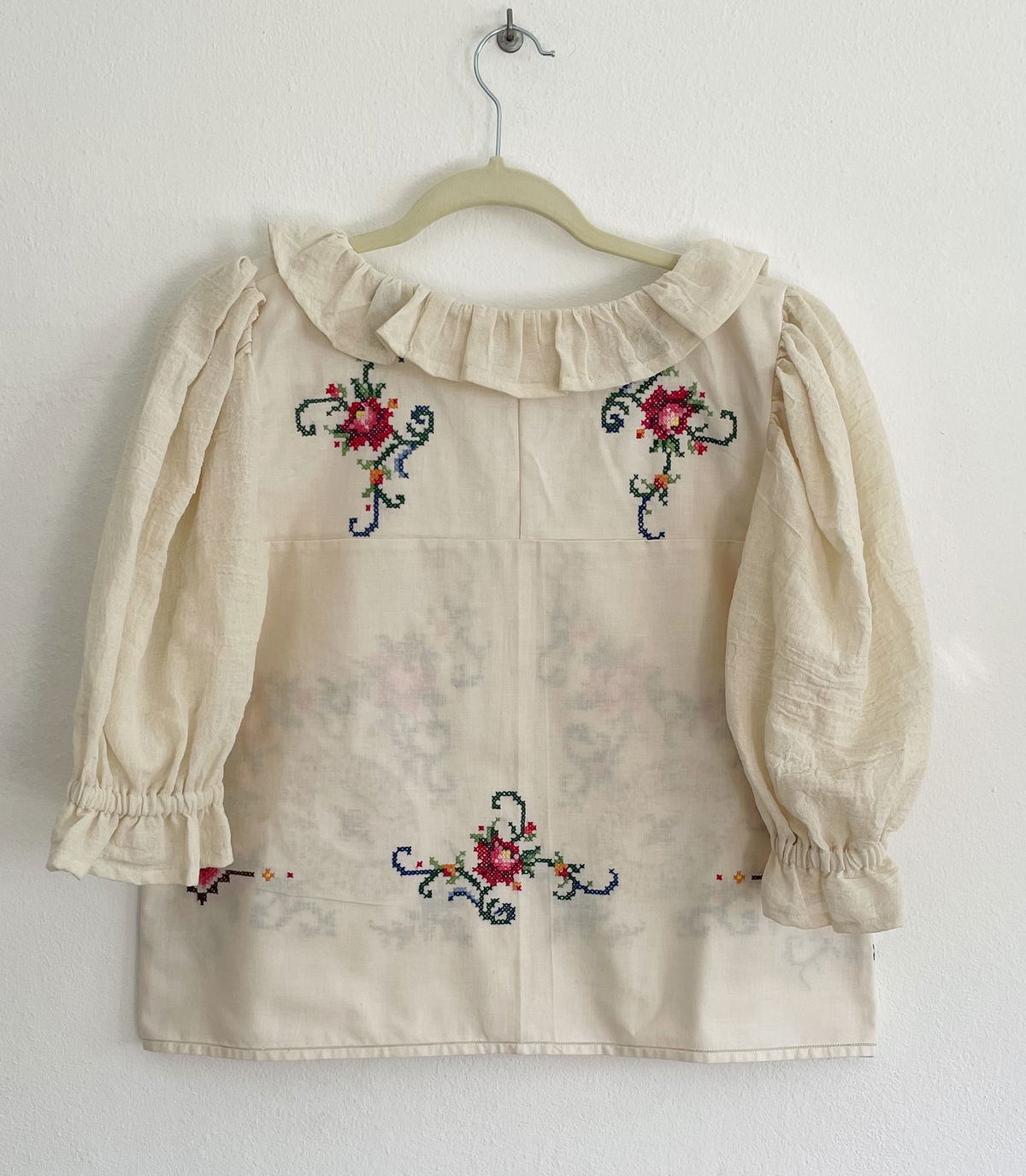 Blusa de algodón con bordados en punto cruz y volados en cuello