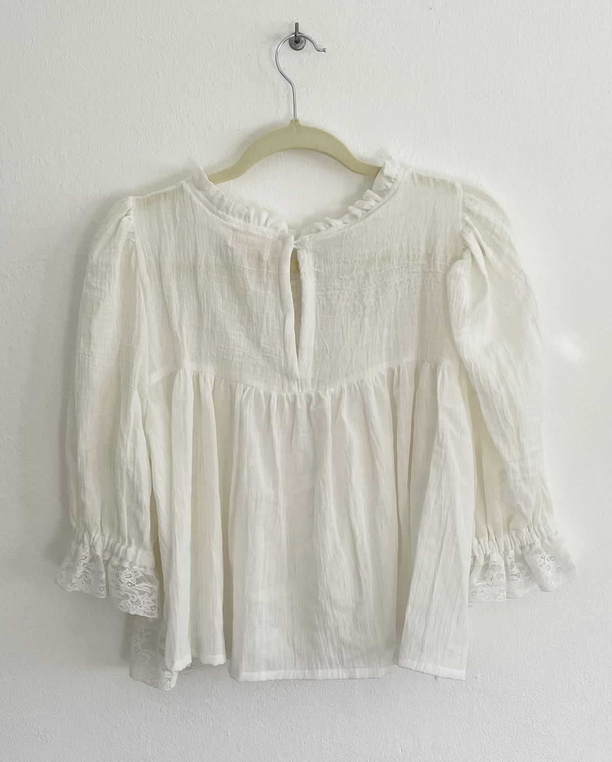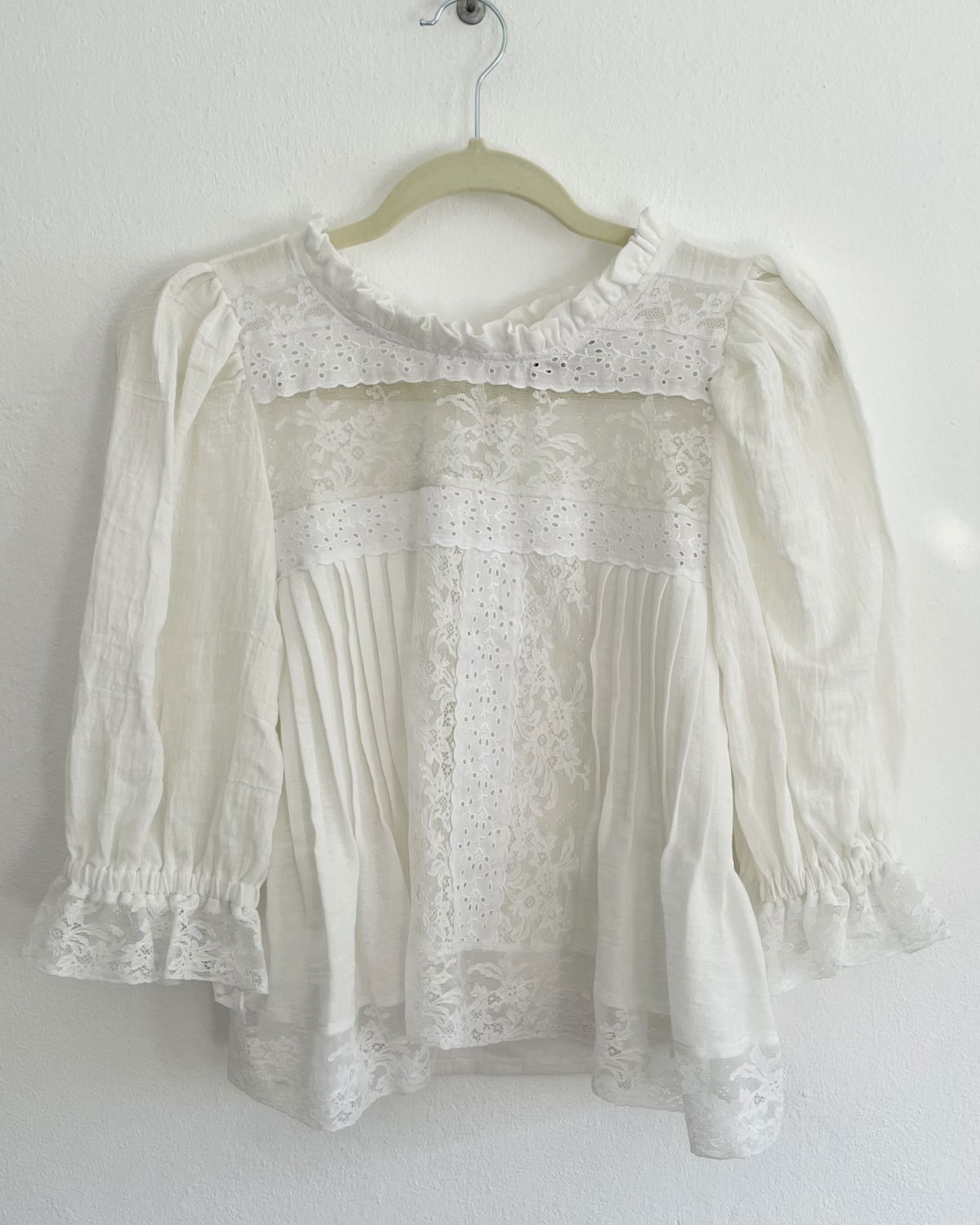 Blusa de algodón con detalles de broderie, puntillas y alforzas