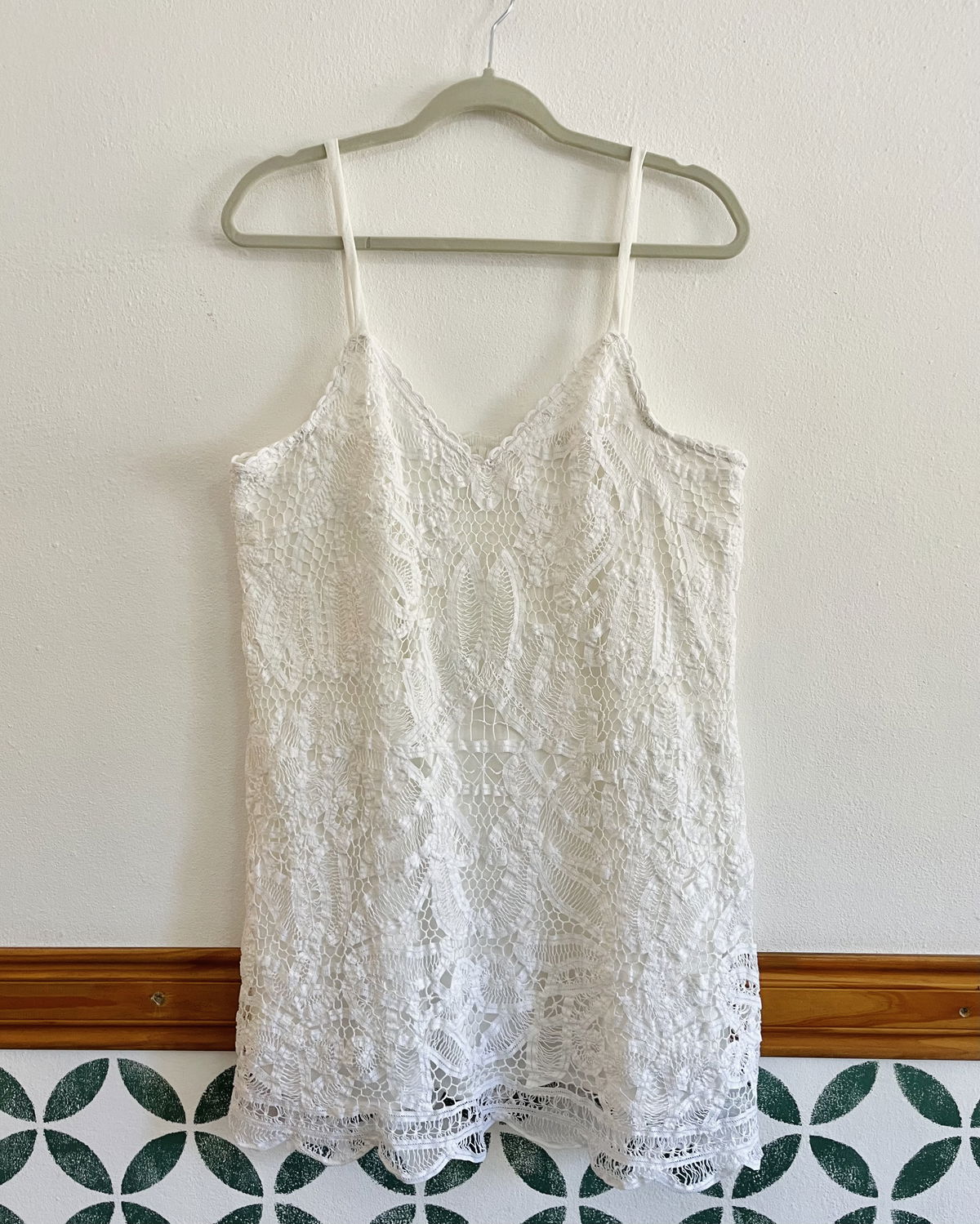 Vestido de encaje inglés de algodón. Con forro a tono y breteles finos