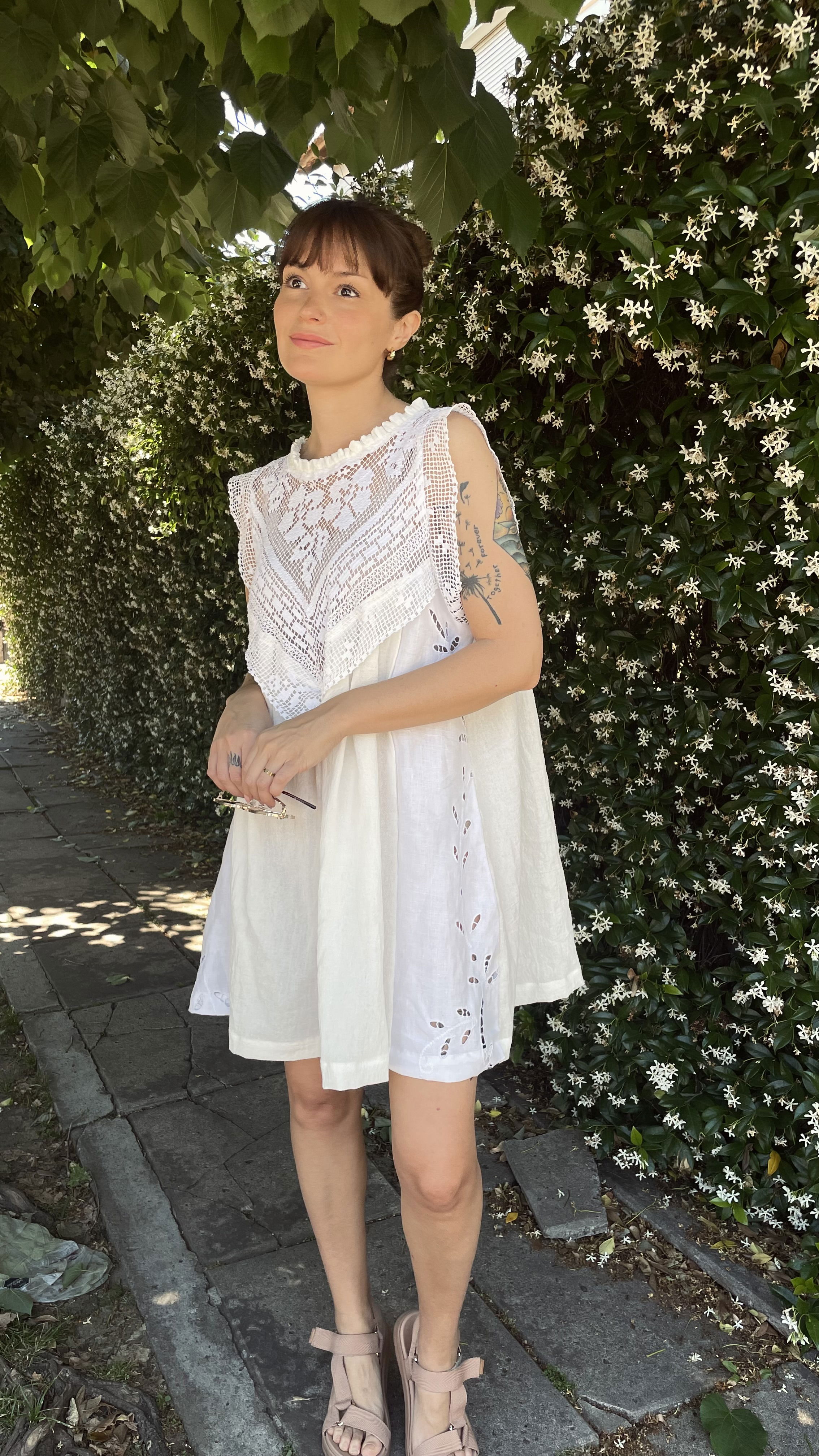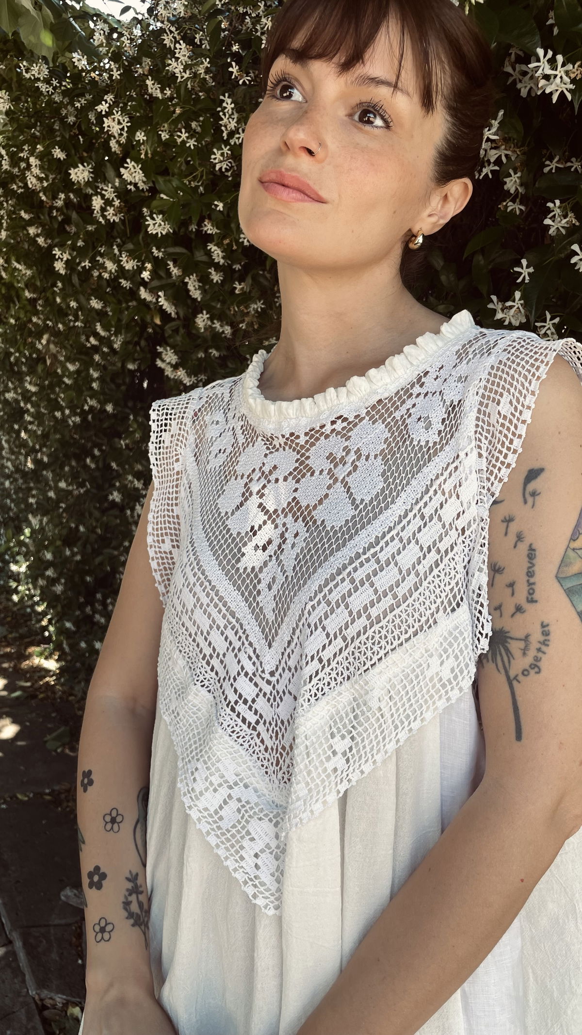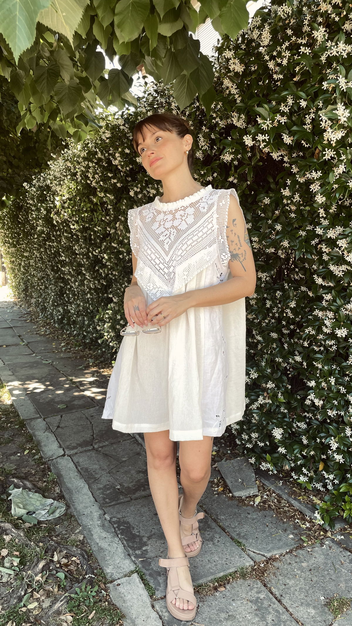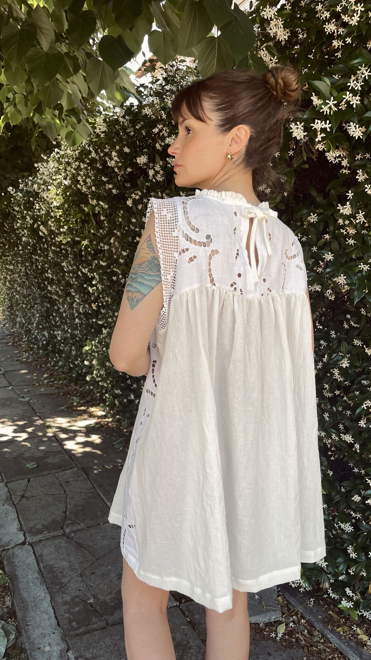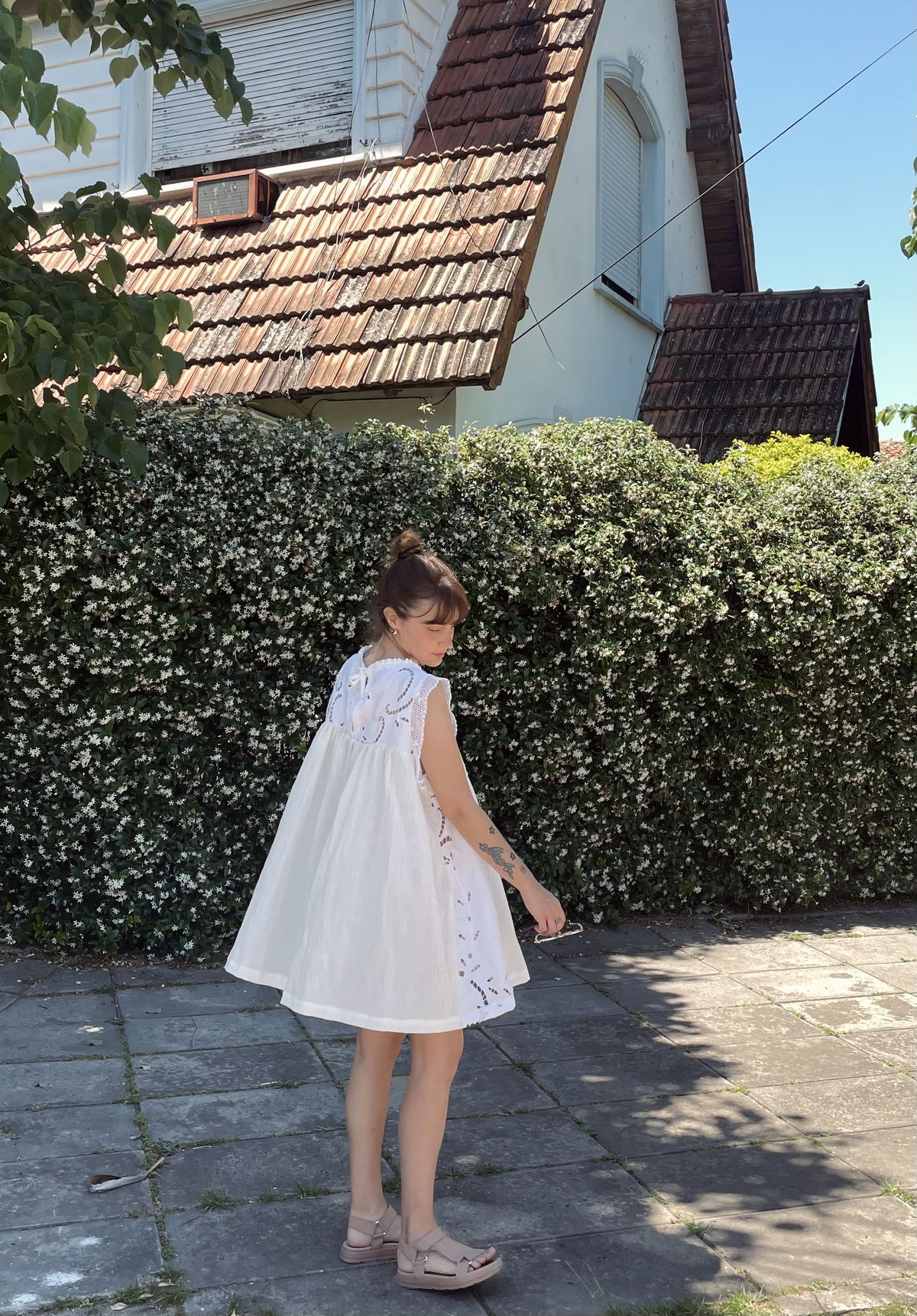 Vestido de gasa de algodón con canesú de tejido en filé francés, súper amplio y cómodo