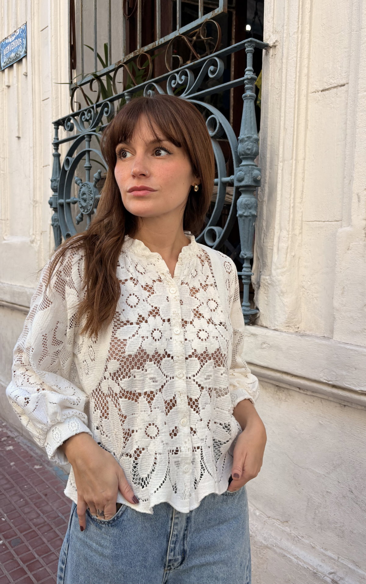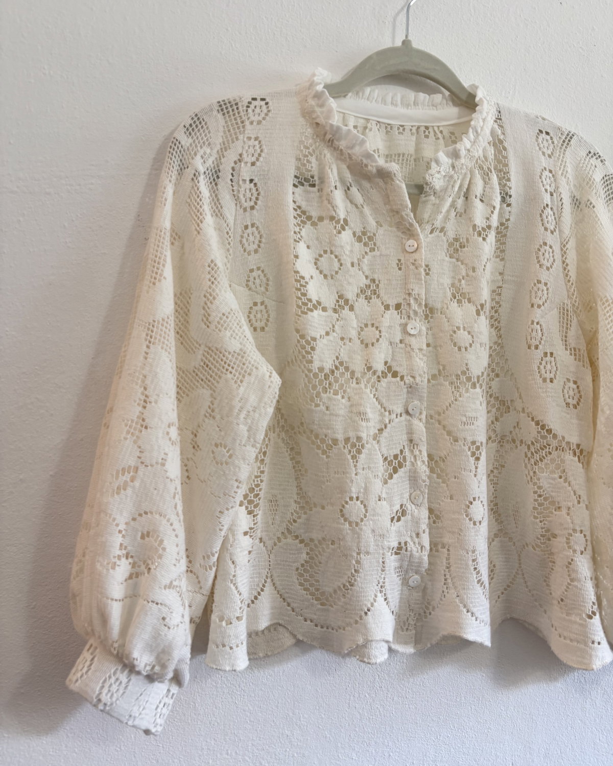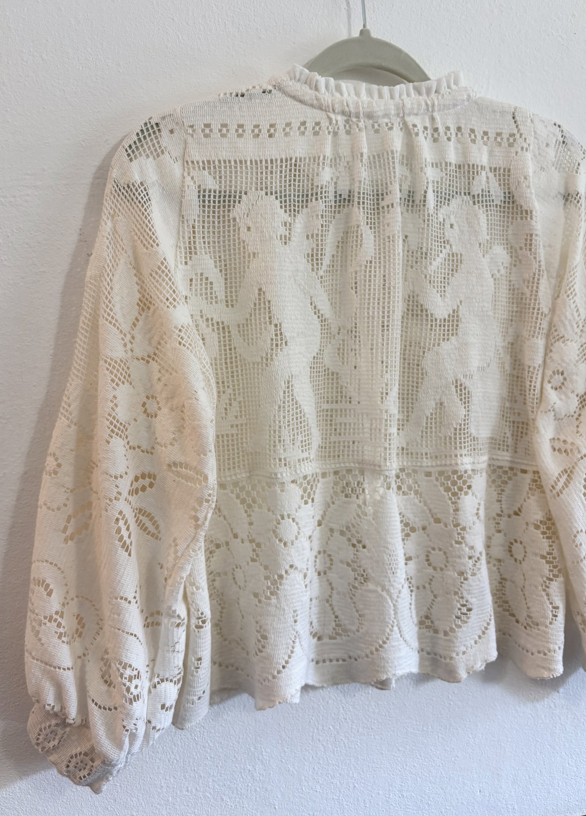 Blusa abierta confeccionada con mantel de fibra de coco y algodón. TALLE M