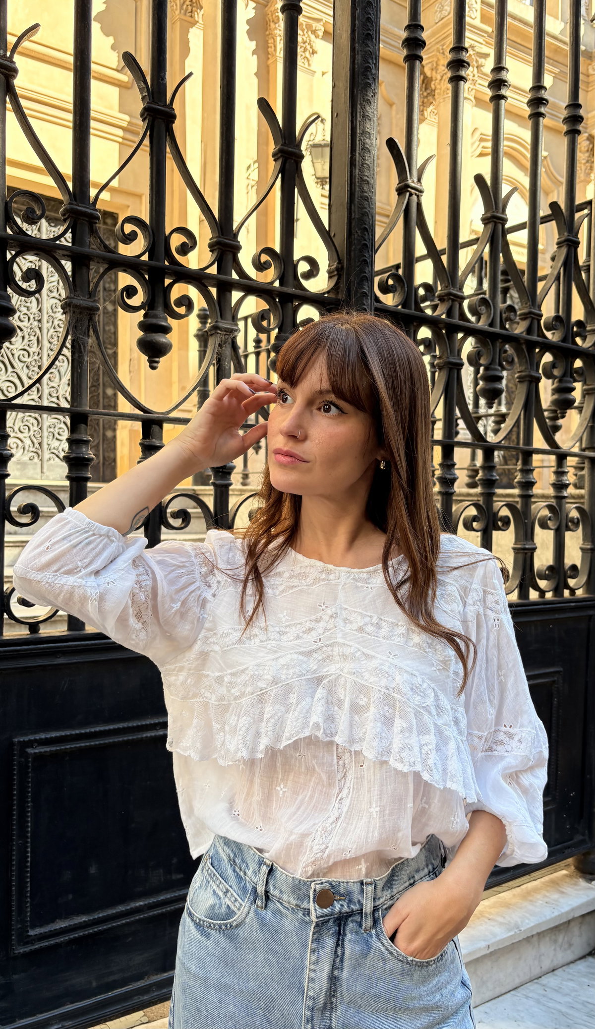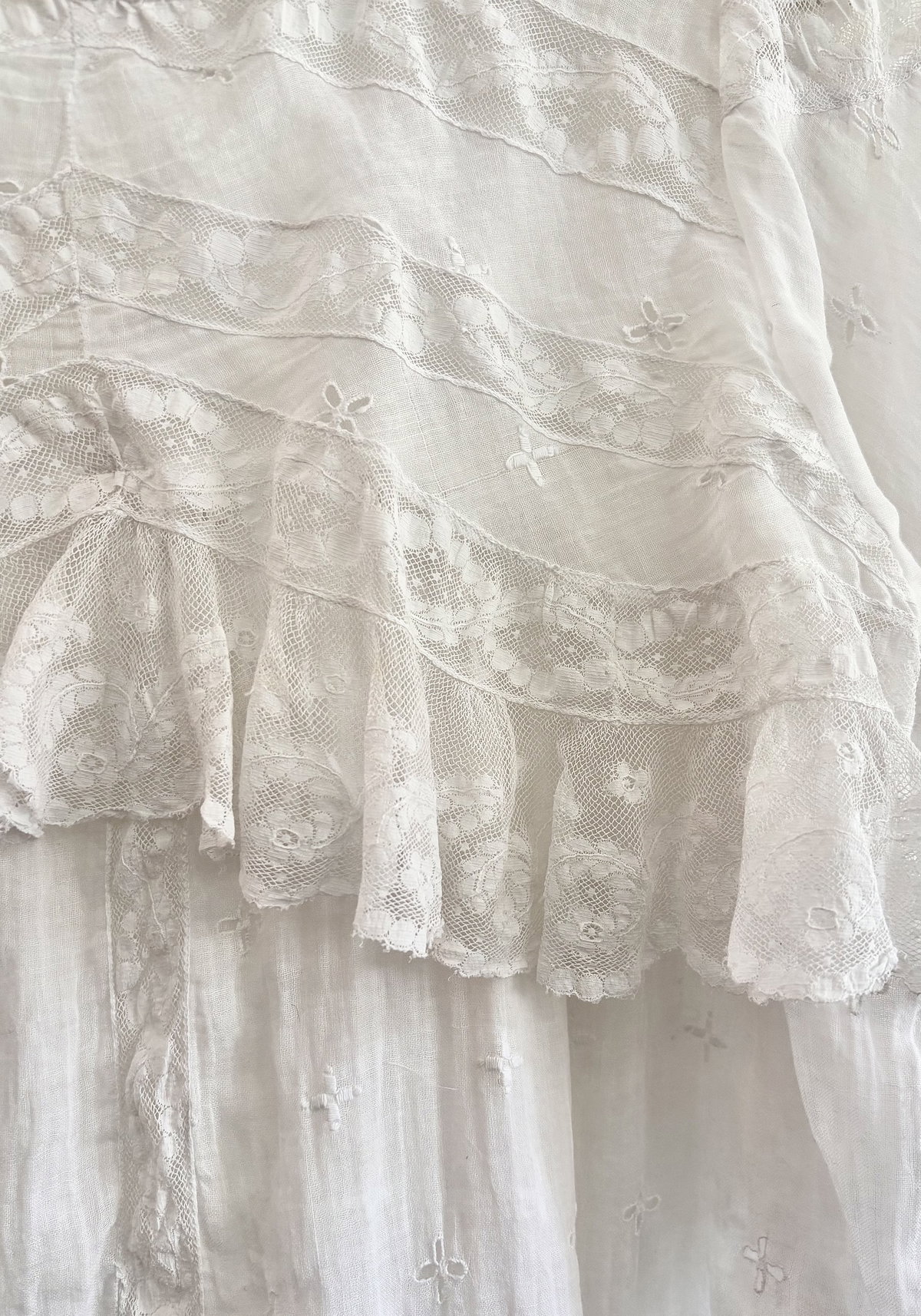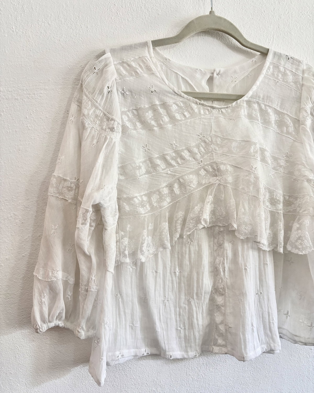 Blusa hecha a partir de enagua antigua de linón suizo puro algodón con detalles y volados de entredós